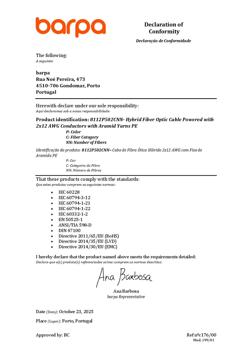 Cable Híbrido 2×12 AWG Aramida – PE – Declaración de Conformidad