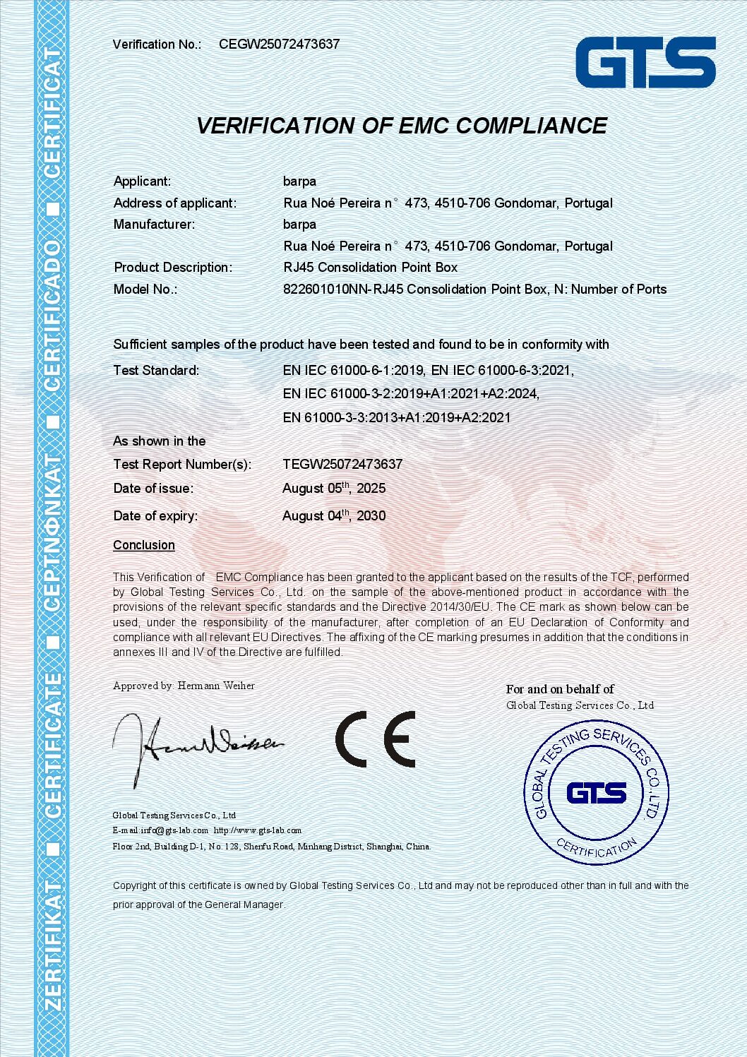 Caja Punto de Consolidación – RJ45 – Verificación del Cumplimiento EMC